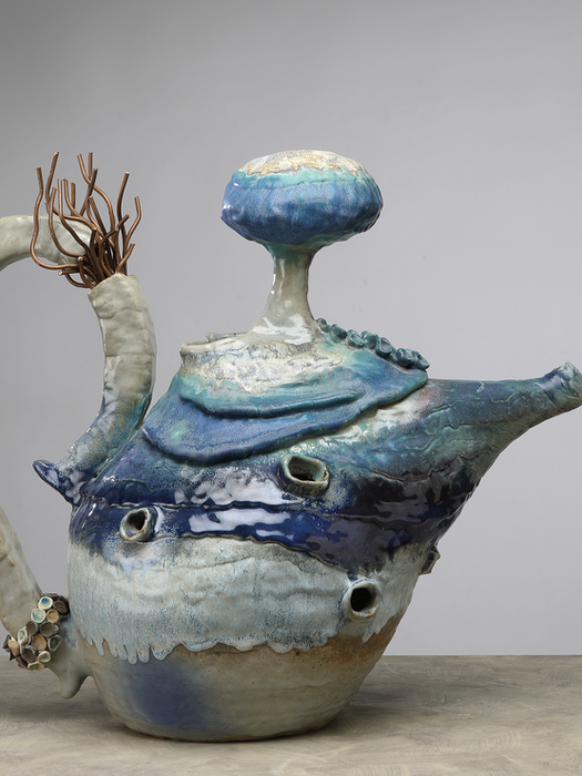 The "Nature's Servings" series revolves around everyday objects like teapots, cups, and jugs to signify the daily interactions and services provided by nature. This series reflects on the beauty nature offers and questions the reciprocity of these interactions. It highlights a crucial comparison between the nurturing capacity of nature and the human tendency to manipulate these resources, drawing attention to the shift from rural harmony to urban dominance.